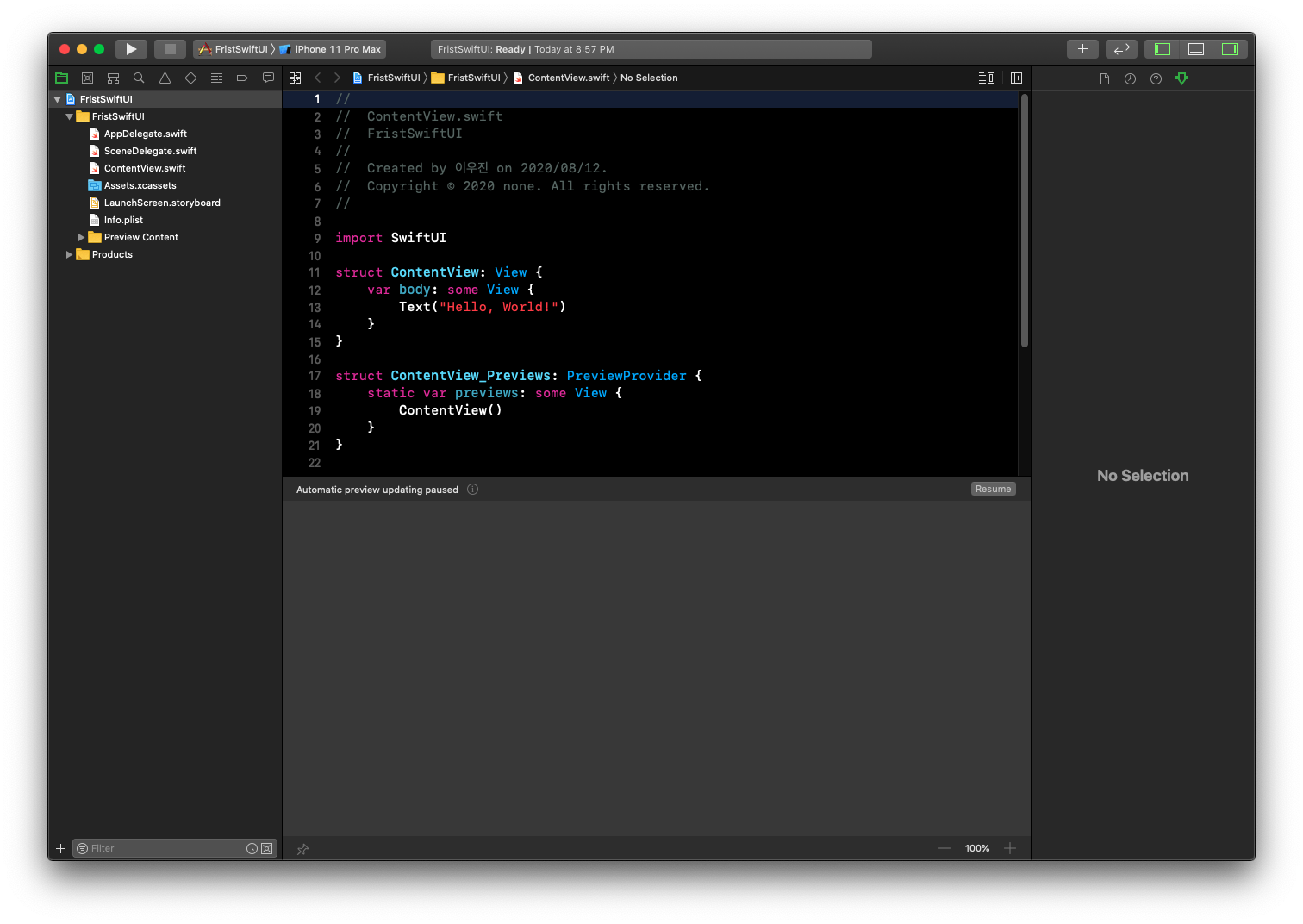 오늘 이렇게 SwiftUI 프로젝트를 생성하는 방법을 알아보았습니다.
