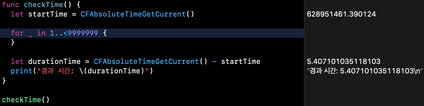 let durationTime = CFAbsoluteTimeGetCurrent() - startTime