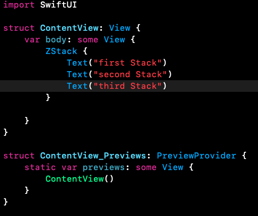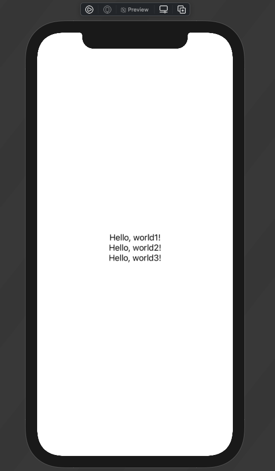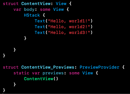 코드에 보이는 VStack안에 쌓여진 텍스트가 수직으로 표현됩니다.