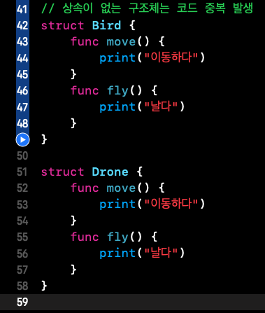 상속이 없는 구조체는 코드 중복이 발생할 수 밖에 없습니다.