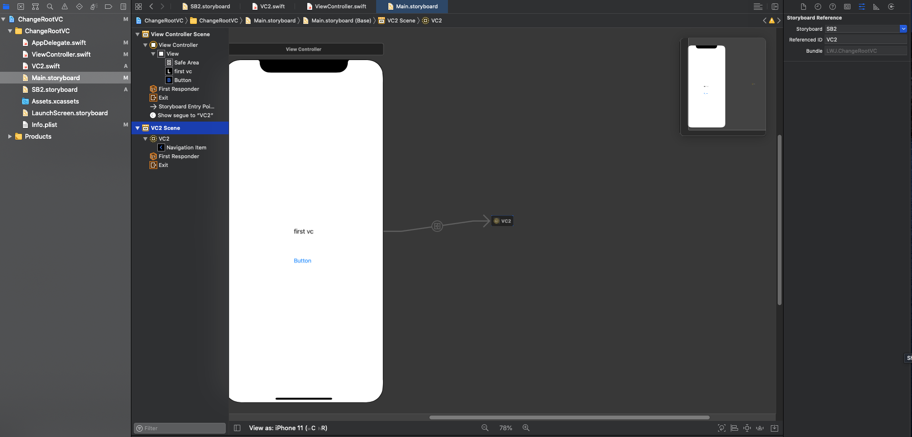 Main스토리보드에서 SB2에 속한 VC2를 참조할 수 있습니다.