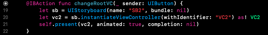 let vc2 = sb.instantiateViewController(withIdentifier: "VC2") as! VC2