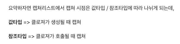 Captured variables are evaluated on execution : 캡쳐된 변수는 클로저가 실행될 때 평가되어집니다.
