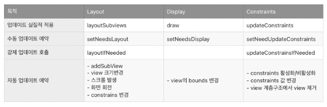 setNeedsLayout(): 다음 업데이트 사이클에 layoutSubviews() 호출